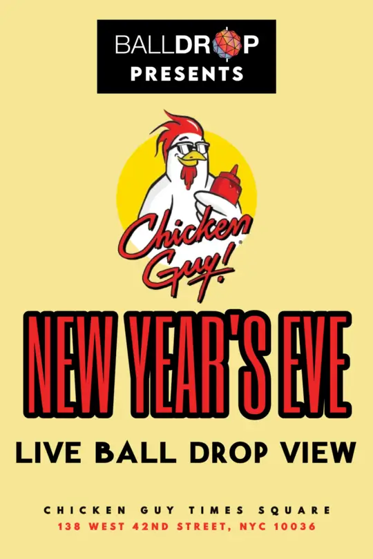 Don’t Miss Out! Be part of history at Chicken Guy’s grand opening New Year’s Eve Party in Times Square. With delicious food, endless drinks, and an unbeatable view of the Ball Drop, this is the ultimate way to welcome 2026. Grab your tickets now and prepare for a New Year’s celebration full of flavor and fun!