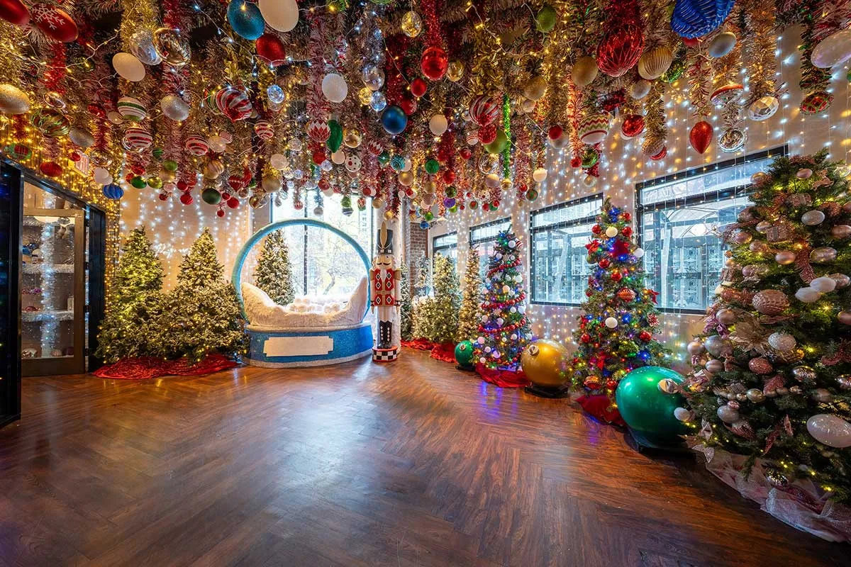 The energy inside Palma Verde is upbeat and celebratory. DJs spin a mix of holiday vibes, party anthems, and countdown favorites, while guests explore Merryland’s décor-filled rooms and capture Instagram-worthy photos. The space provides a comfortable indoor NYE experience just steps from the world’s most famous countdown—without the freezing temperatures or outdoor chaos.
